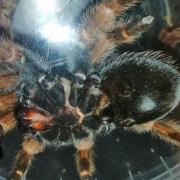 Brachypelma boehmei – мой первый паук. Безумная идея завести паука пришла ко мне неожиданно, но будучи человеком осторожным, я целый месяц провела на всем известном паучьем сайте, изучая информацию об этих членистоногих, их содержании и повадках. Паук должен был быть: спокойный, не ядовитый, ну и чтобы радовал глаз. Всем известно, что пауки рода Brachypelma наиболее подходят для новичков благодаря слабой токсичности яда и легкости в содержании. B. boehmei прельстил меня своей окраской, хотя я колебалась между ним и B. emilia.
